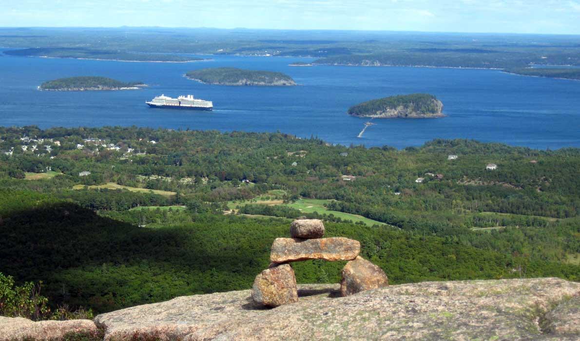 A cruise ship seen from the North Ridge Trail on Cadillac Mountain.